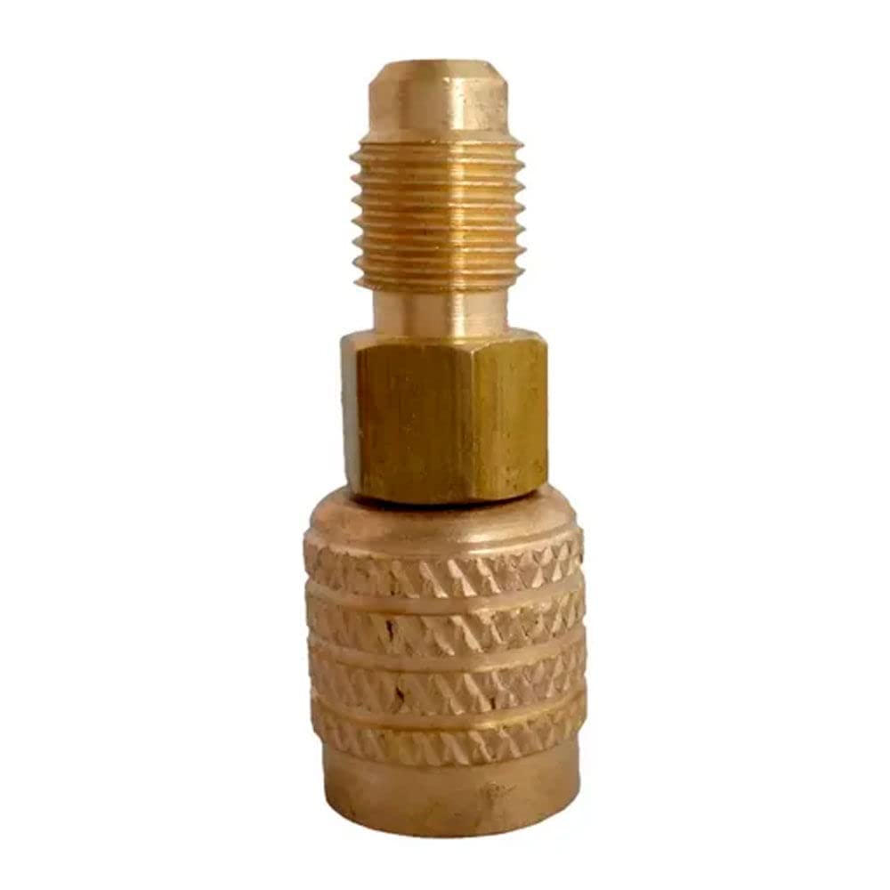 - Connect 1/4-inch Side: Thread the 1/4-inch male flare end of the adapter onto the corresponding 1/4-inch female port or hose. Hand-tighten first, then use an appropriate wrench to snug it securely. Do not overtighten.