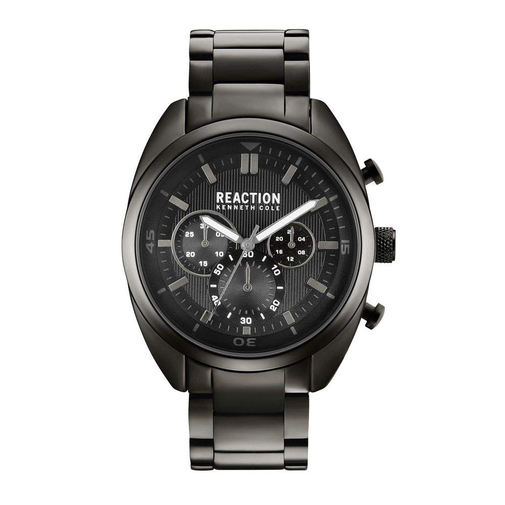 Your Kenneth Cole Reaction watch operates on a precise Japanese Quartz Analog movement. The watch displays the current time with hour, minute, and sweeping second hands. Please note that any additional sub-dials or pushers on this model are for aesthetic purposes only and are non-functional.
