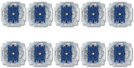 This image displays a pack of ten Busch-Jaeger Balance SI on/off switches, showing their internal mechanism and mounting frame.