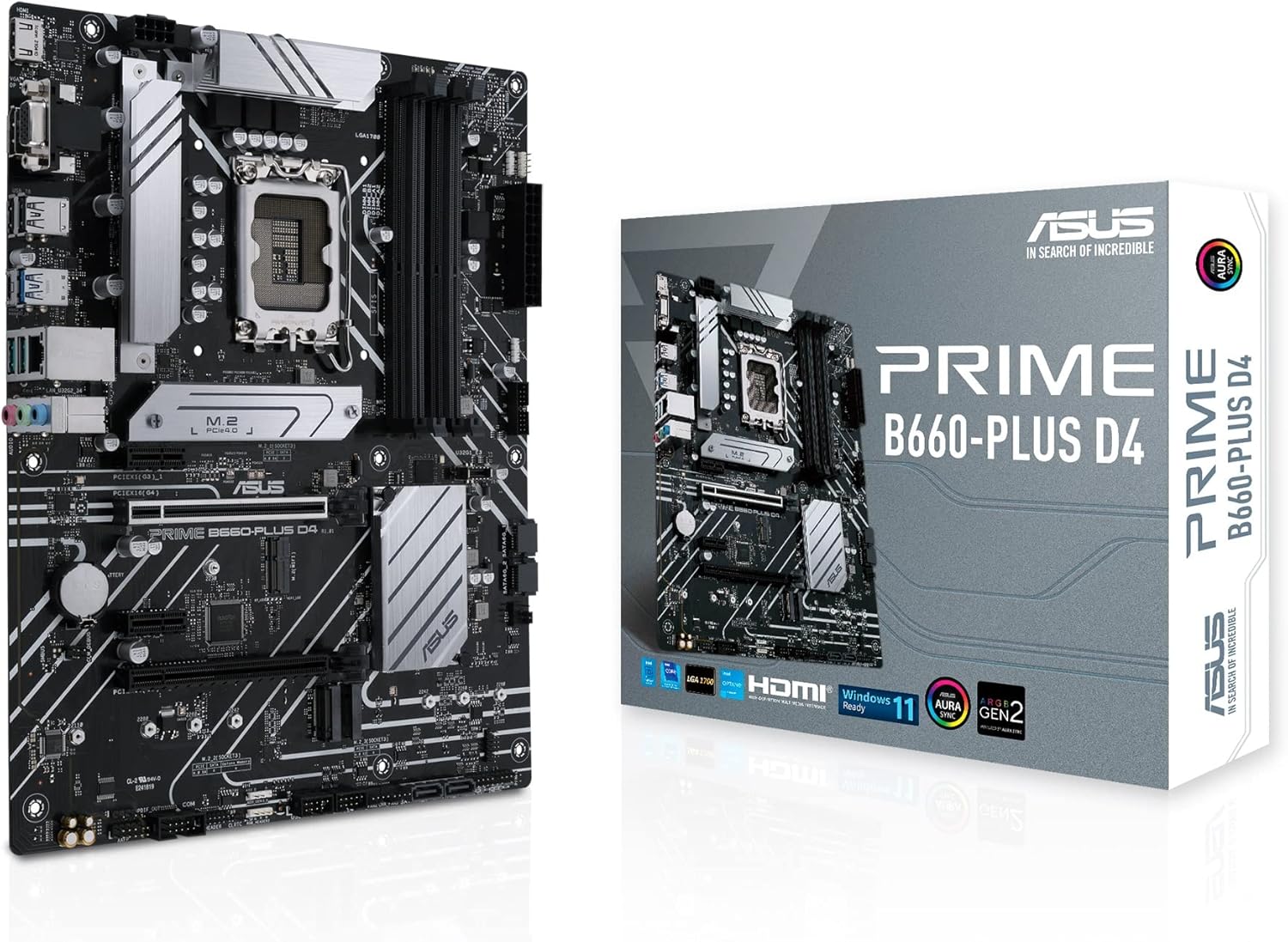 The ASUS PRIME B660-PLUS D4 is an ATX motherboard designed to support the latest 12th Generation Intel CPUs with the LGA 1700 socket, including Pentium Gold and Celeron Processors, utilizing the Intel B660 Chipset. This motherboard is built to provide a stable foundation for your PC build, offering a balance of features and performance.