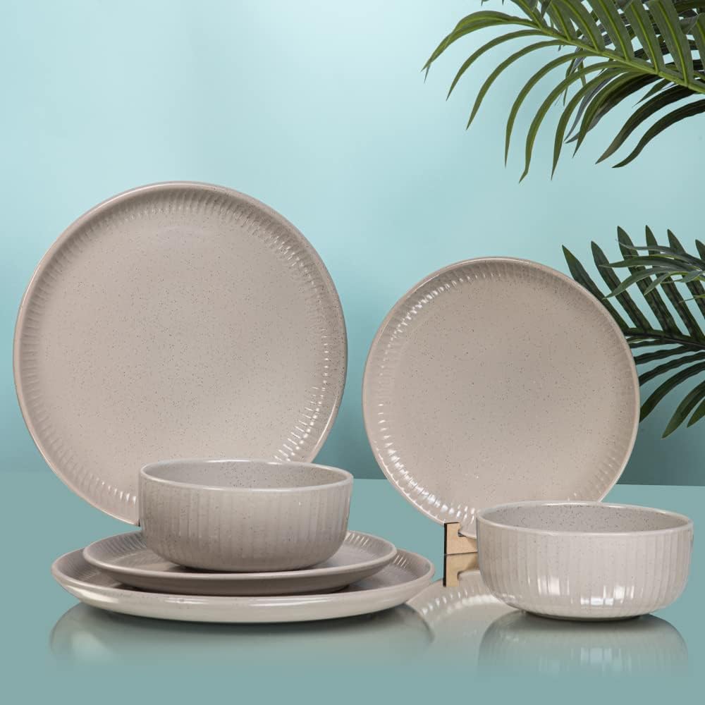 12dílná jídelní sada Anko Reed je všestranným a elegantním doplňkem každé kuchyně, určeným pro každodenní použití i pro zvláštní příležitosti. Tato sada obsahuje 4 jídelní talíře, 4 přílohové talíře a 4 misky vyrobené z vysoce kvalitní kameniny. Je přísně testována společností Intertek na bezpečnost potravin, což zaručuje, že neobsahuje olovo ani kadmium. Sada je také vhodná do mikrovlnné trouby a myčky nádobí a je tepelně odolná, což umožňuje pohodlné ohřívání přímo z lednice. Její moderní design a zářivá krémová barva vylepší každé prostírání.