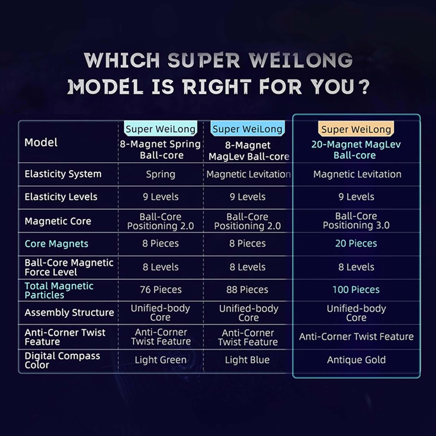 Welcome to the instruction manual for your Moyu Super WeiLong 2023 3x3 Magnetic Speed Cube. This high-performance puzzle cube features advanced magnetic positioning, adjustable elasticity, and a smooth UV-coated surface designed for speedcubing enthusiasts. This manual will guide you through understanding its features, setup, operation, and maintenance to ensure optimal performance and longevity.