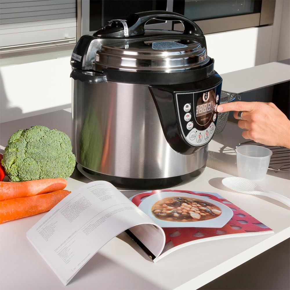 The Cecotec Programmable Electric Pot 6L GM D+ is a versatile multi-function kitchen robot designed to simplify your cooking experience. With a generous 6-liter capacity, it can serve up to 12 people, making it ideal for families and gatherings. This appliance offers 9 distinct cooking menus and 2 pressure levels up to 60 kPa, including a dedicated Fry function.